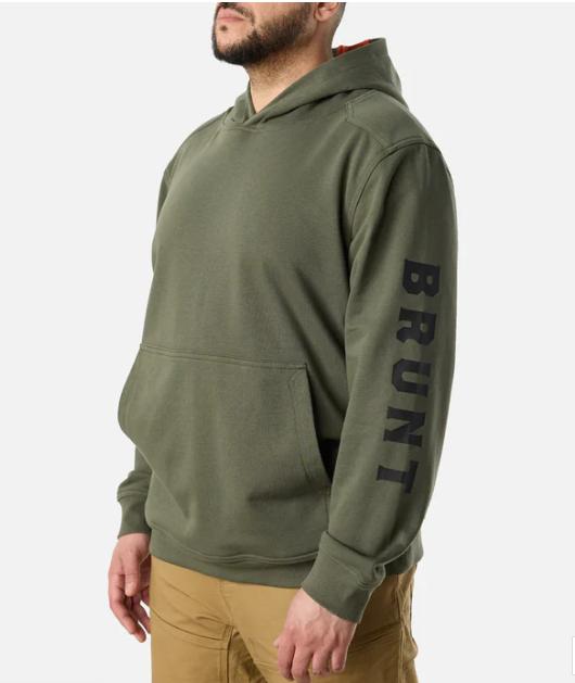 The Levin Hoodie delivers lightweight comfort and lasting durability built for the jobsite. The hard-hat-compatible hood keeps you covered, while the oversized front kangaroo pocket warms your hands, offers convenient gear storage, and has catch corners to keep your essentials secure. Rib-knit sleeves and hem cuffs provide a snug, flexible fit that helps lock out the cold - making it a great layer year-round. Designed with drop shoulder seams and finished with BRUNT branding on the sleeve.