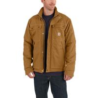 Carhartt designed this men's coat with all of the safety and technical features the toughest jobs require. Flame-resistant duck repels water, while stretch panels give you full freedom of movement. Warm insulation keeps you comfortable in frigid weather.