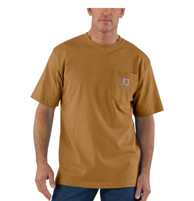 Men's heavyweight 6.75 ounce t-shirt that gives you room to move. Our pocket t-shirt debuted in 1992, and its rugged cotton design and clean looks made it a fast favorite among the hard-working folks who pulled it on. Though decades and trends have come and gone, there's a reason the K87 remains a classic. This men's t-shirt is made with heavyweight cotton built to handle tough days on the job. It has a loose fit that gives you room to move and a soft feel that only gets better with time.
