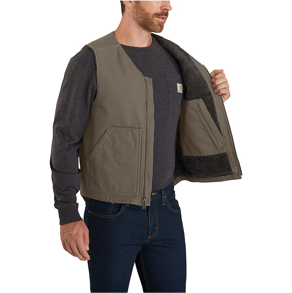 This men's vest is a versatile layer built to pack on extra warmth right where it matters most. It's made of our signature heavyweight cotton duck, and has a warm sherpa lining to take on chilly weather.