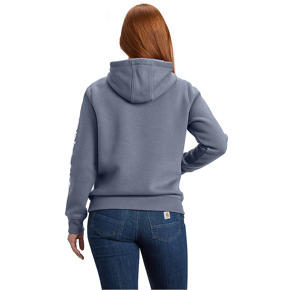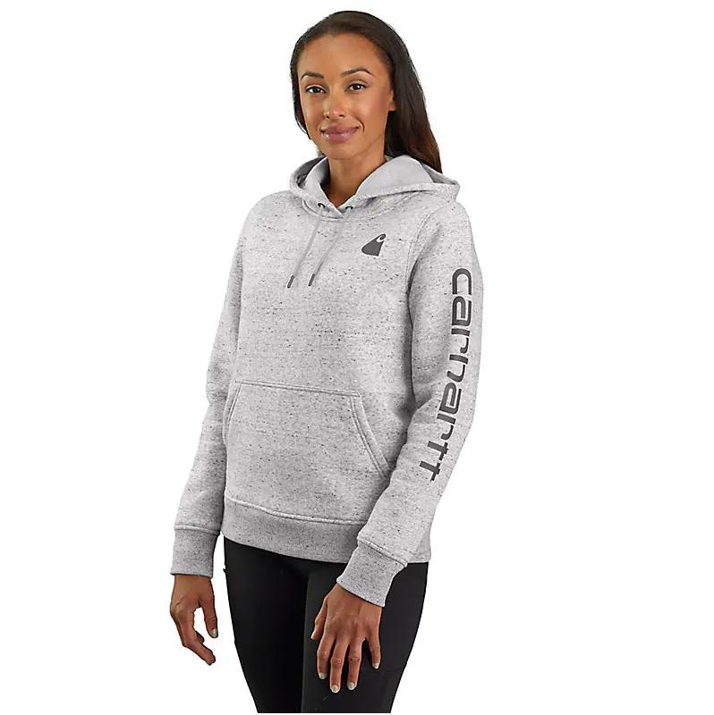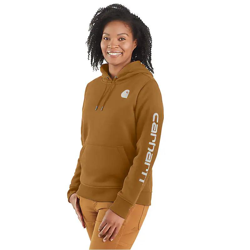 Women's graphic sweatshirt with a relaxed fit and soft feel. - Not all hoodies are created equal. Cold winter mornings are a lot more comfortable with this women's cozy hoodie. Made of heavyweight fleece, the sweatshirt is brushed on the inside for extra softness. It has a relaxed fit that allows for easy layering, and it's finished with a Carhartt logo down the sleeve.