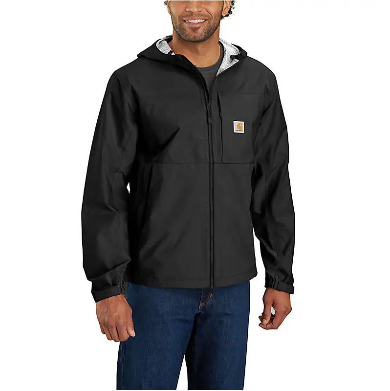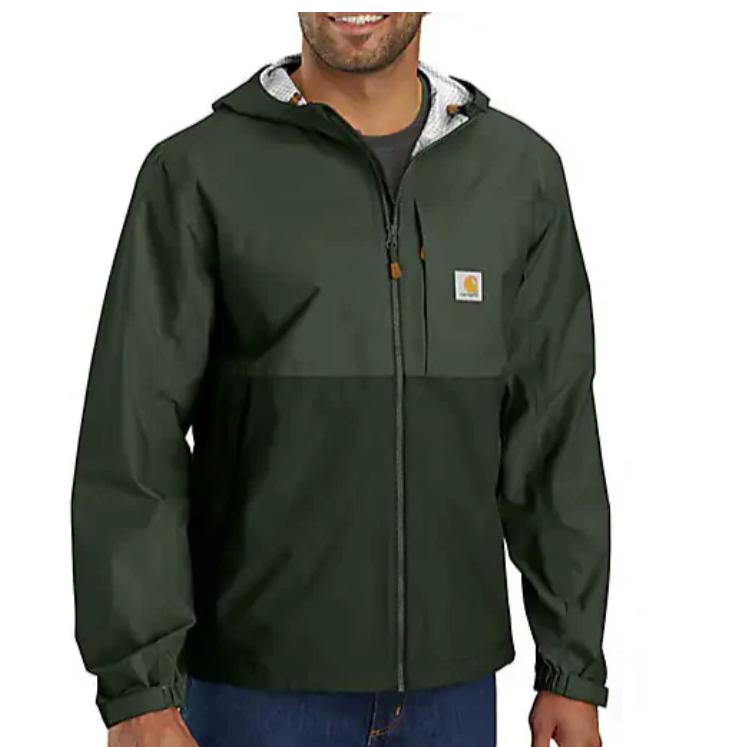 Rainy day? Bring it on. This men's lightweight Carhartt jacket seals out wind and heavy rain, so you stay dry and comfortable. Complete with water-repellent zippers and an adjustable hood, it has a fully seam-sealed design. Store small essentials inside the multiple pockets, and pack the jacket into its own pocket once the sun breaks through.