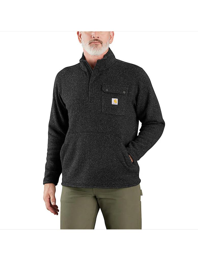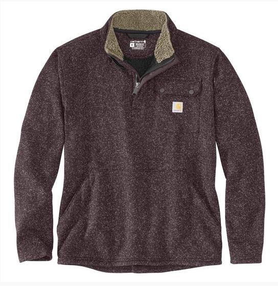 Stay warm when you're working outside. This men's Carhartt fleece sweater is your go-to when the temperatures drop. The collar is lined with sherpa fleece for an extra soft feel. The snap pocket secures essentials for the job ahead.