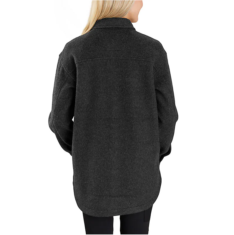When the day starts cool, throw on this women's Carhartt shirt jac to extend your comfort range. The fleece blend has a wool-like feel that holds up to casual days and work wear alike. It's cut for a loose fit for plenty of room to move and easy layering. Three pockets keep everyday essentials close at hand.
