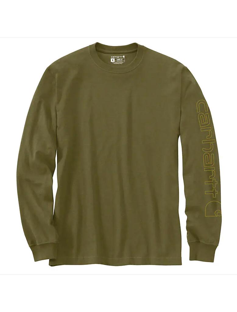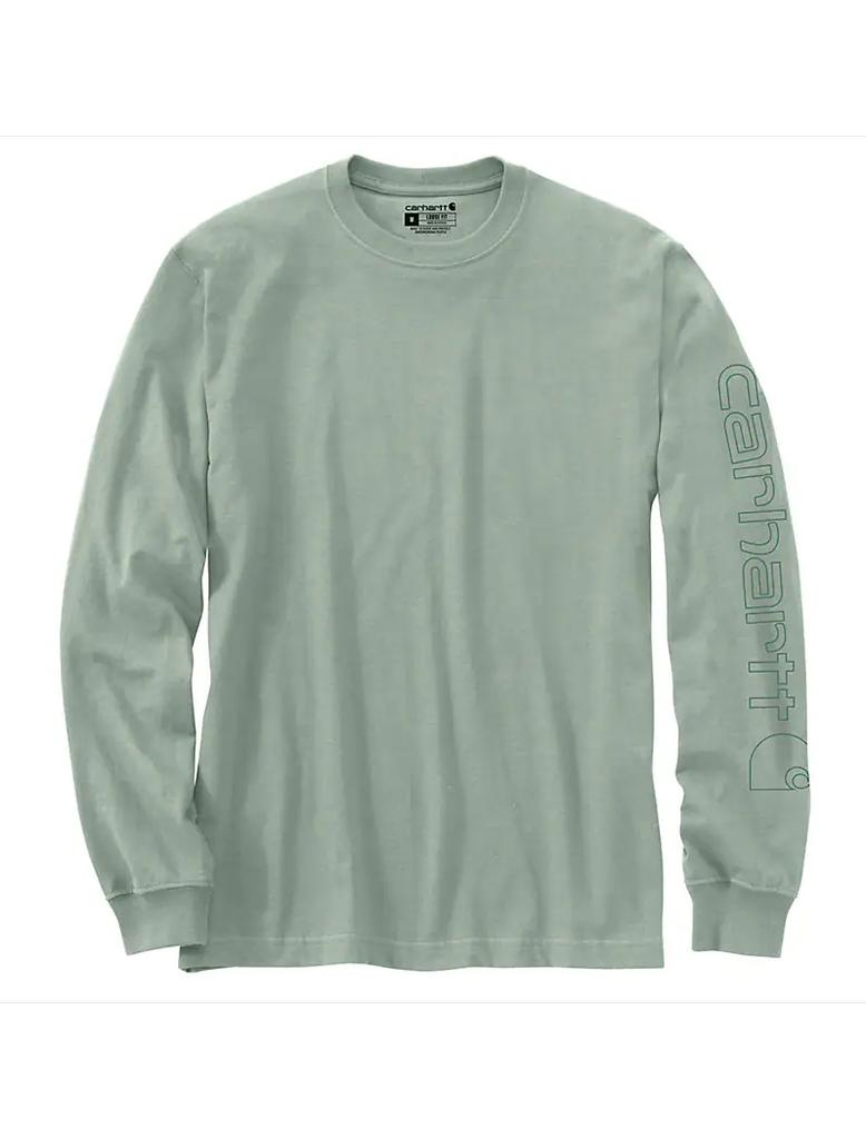 For well over a century, the Carhartt name has stood for quality and dependability on the job. This men's long-sleeve t-shirt is made of heavyweight cotton jersey and features a Carhartt logo on the sleeve.