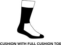 Punches in but never punches out. The Steely delivers Full Cushion comfort throughout the entire sock and around the clock. Cushioning from the toe box to the top of this sock delivers the goods 24/7.