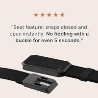- MATERIALS - Its signature magnetic clasp also makes this the easiest belt to snap on during your morning hustle and wear all day long without hassle. Our tactical belt began with our proprietary webbing, engineered with just the right amount of stretch to keep you secure, yet comfortable. We then added the world’s best belt buckle that clicks seamlessly into place using rare-earth neodymium magnets set in an A380 aluminum alloy.