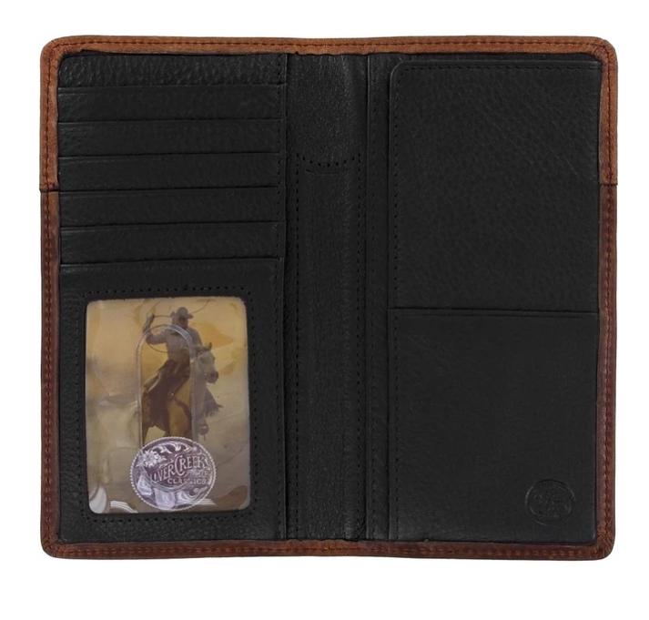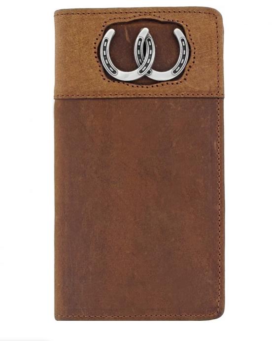 Carry this checkbook wallet, with two horseshoes, and bring extra luck to your pocket. The silver-plate ornaments recall the West, while its practical compartments fit cards, checkbook, a pen, id, and more.