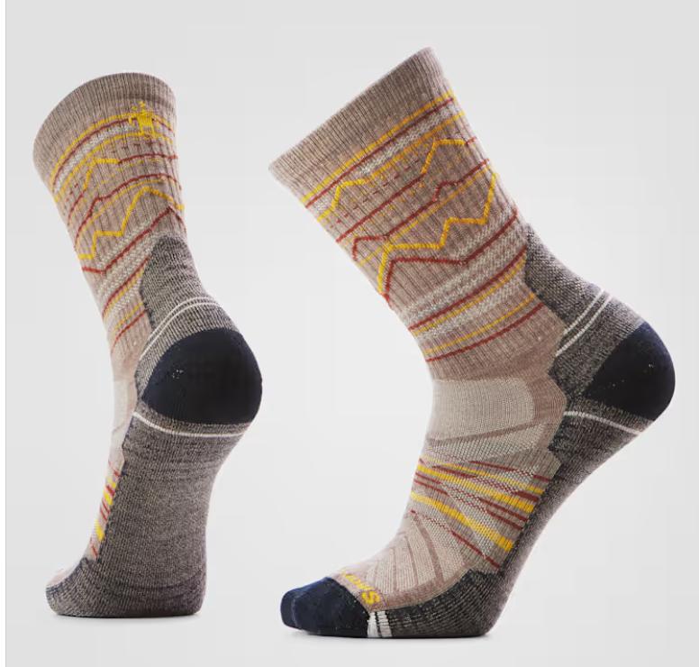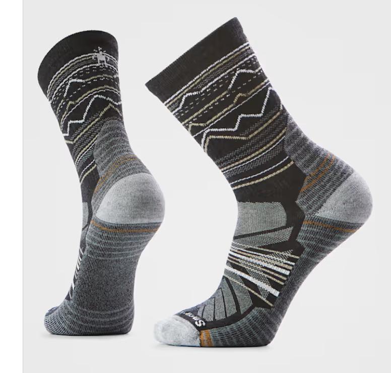 Do what feels natural in our Hike Light Cushion Mountain Range Pattern Crew Socks. These socks have enhanced features to our responsibly sourced, ZQ-certified Merino wool socks to help you stay comfortable, breathable, and able to hike any way you like. Improved durability and mesh zones work together with our top sock technologies to bring you a wool hiking sock capable of climbing it all. Light cushioning along the entire bottom of the sock brings more comfort to your favorite hiking shoe or boot. A crew height helps add extra coverage on the trails and recycled nylon makes this sock more sustainable than ever before. Gear up to go far with Smartwool.