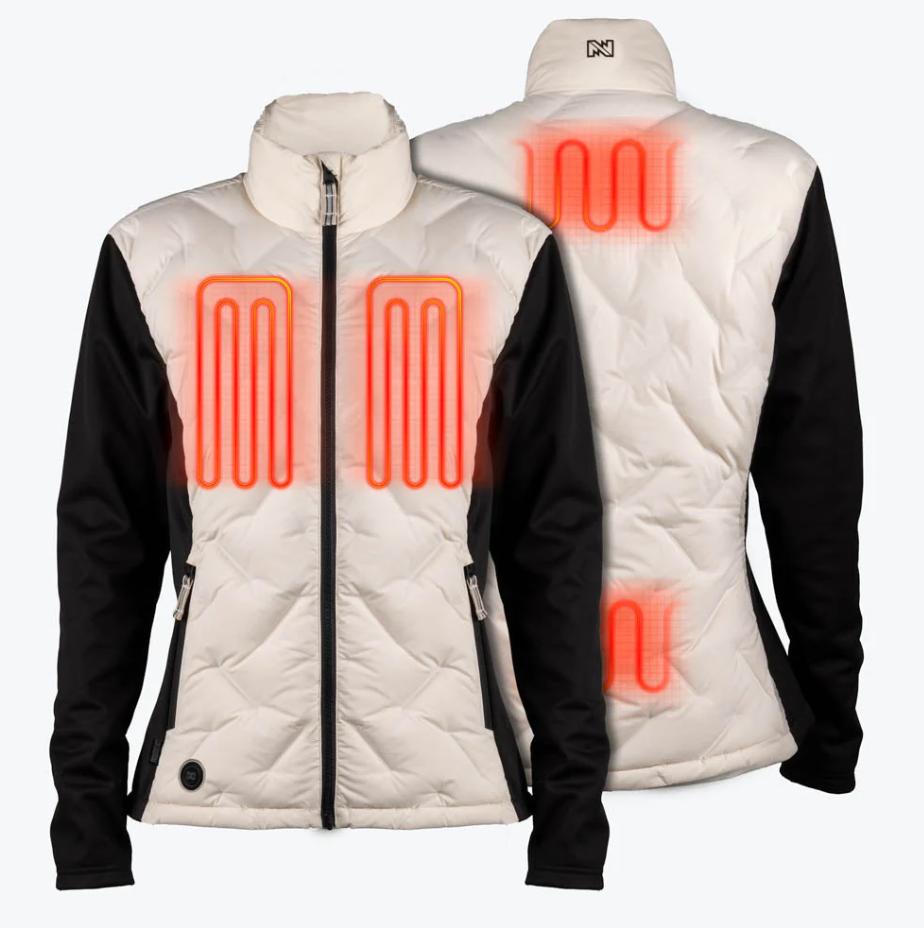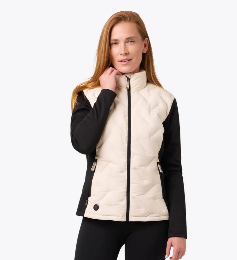 Lightweight, warm, and built to move— the Aria Hybrid Heated Jacket blends style and performance for life on the go. With 4 heat zones across the chest and back, a sleek heat-seal emboss pattern, and contrast sleeves for flexibility, this two-tone jacket keeps you comfortable during chilly hikes, crisp morning runs, or weekend getaways. Finished with durable YKK zippers and Bluetooth heat control for effortless comfort.