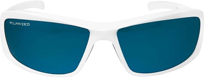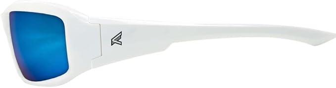 Edge TXBAP248 Brazeau Torque Polarized Wrap-Around Safety Glasses, Anti-Scratch, Non-Slip, UV 400, Military Grade ANSI/ISEA & MCEPS Compliant, 5.04" Wide, White Frame / Aqua Precision Blue Mirror Lens